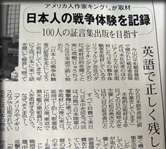 An article appearing in the August 15th edition of the Kobe Shinbun in which Dan King asks the readership's help in identifying a Japanese flag that was brought back from Iwo Jima. It is marked "Kobe City" and has stamps from a temple in Kobe so it is believed by the Japanese who observed it to be from that area. Assisting him in his quest to return the flag to the family is Iwo Jima veteran Tsuruji Akikusa who was a seaman during was severely wounded and captured during the battle. Dan King interviewed Mr. Akikusa for his upcoming oral history book on the experiences of the Japanese fighting man in WWII.