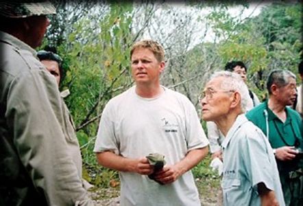Me introducing Mr. Kiyokazu Tsuchida to rest of the group. (Mr. Tsuchida is one of a handful of survivors of the 11,000 man defense unit that was wiped out on Peleliu. He survived in the jungle for nearly 3 years after the war was over.) WIth back to camera is John Edward. Behind Mr. Tsuchida is Mr. Kageyama the man who found PFC Bill Moore's cup.