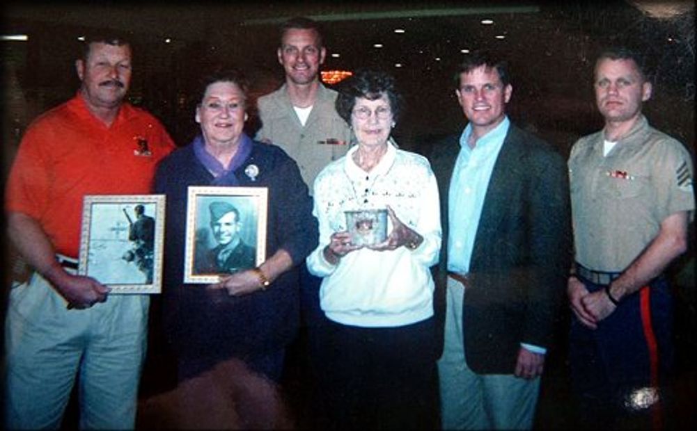 The emotional presentation was a simple gathering in the lobby of a hotel where we presented Dorothy Saraga and Betty Birch with their brother's canteen cup along with some tokens of appreciation that included a Marine Corps flag for each of them and a small bag of sand from the place where their brother made the ultimate sacrifice.